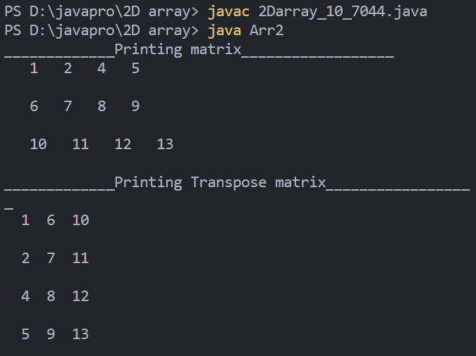 System.out.println("_____________Printing Transpose matrix__________________");