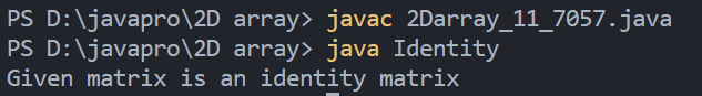 System.out.println("Given matrix is not an identity matrix");
