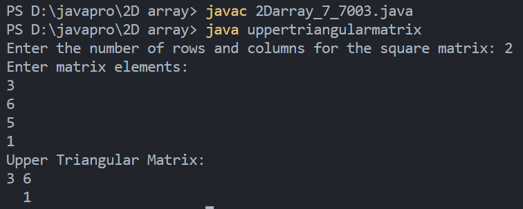 System.out.println("Upper Triangular Matrix:");