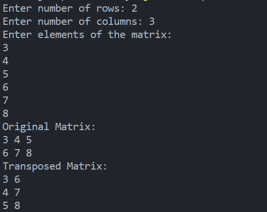 System.out.println("Transposed Matrix:");