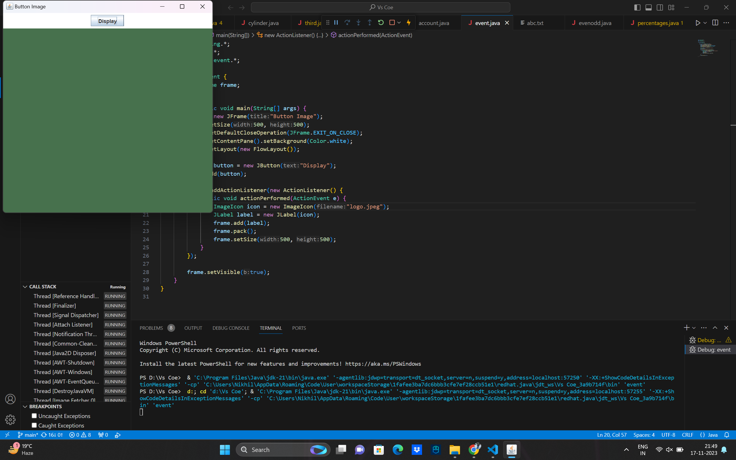 3. Java Program to Create a Button and Display Image in the Frame when Clicked