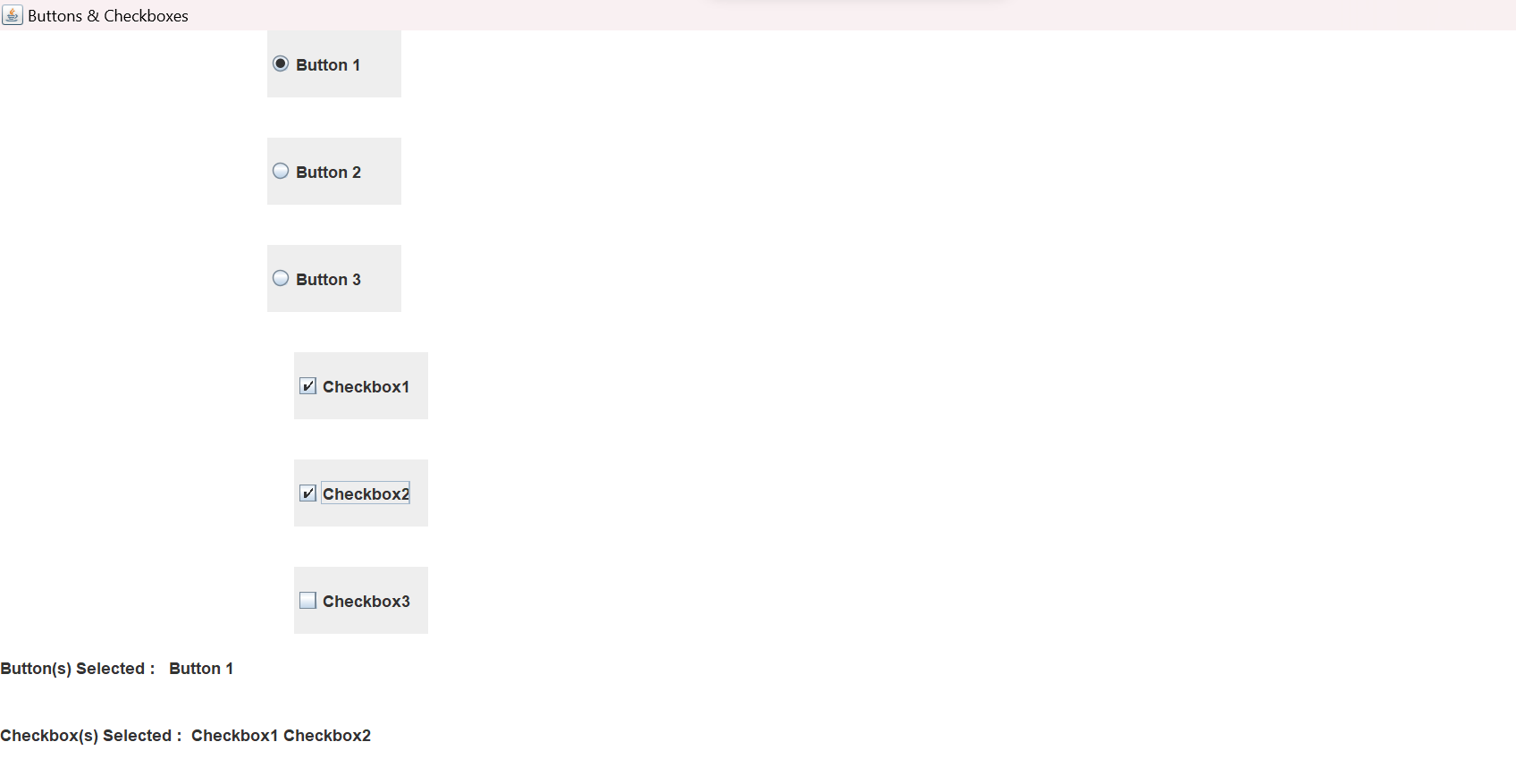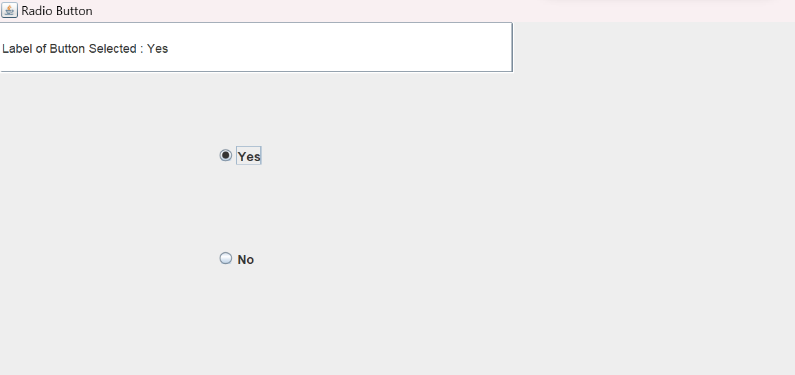 4. Java Program to Create 2 Radio Buttons and Display Selected Button Label