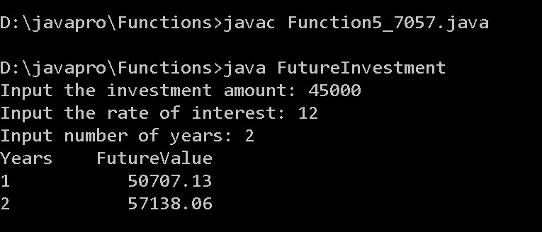 System.out.printf(i + "%"+formatter+".2f\n", futureInvestmentValue(investment, rate/12, i));