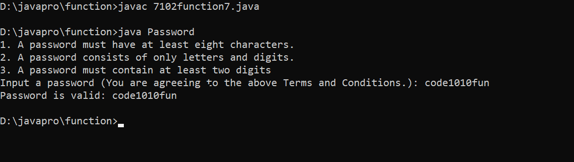 System.out.println("Password is valid: " + s);