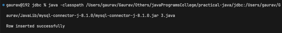 System.out.println("Row inserted successfully");}