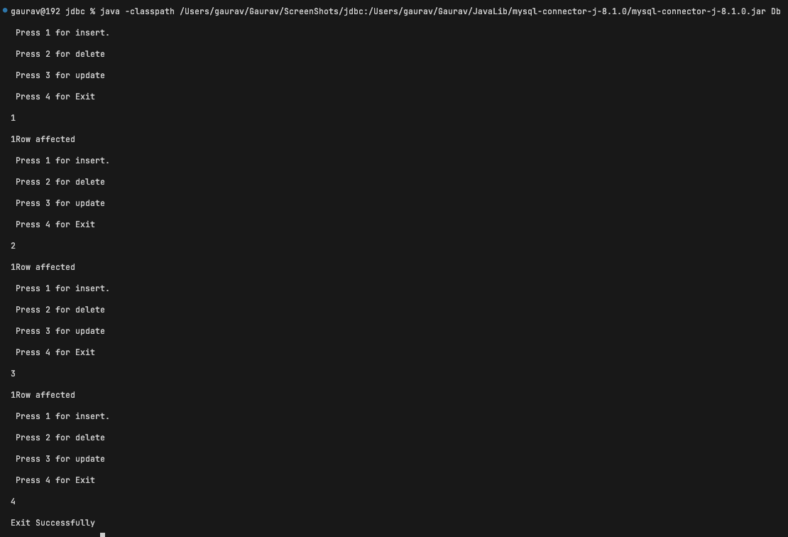 System.out.println(" Press 1 for insert. \n Press 2 for delete \n Press 3 for update \n Press 4 for Exit");